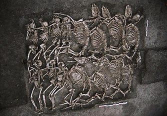 En 2002, au pied du grand camp, au lieu-dit l'Enfer, ont été découvertes cinq fosses contenant des chevaux. Ces cinquante trois bêtes avaient fait l'objet d'un enterrement soigné. Leur étude a montré qu' il s'agit d'animaux de petite taille (caractéristique des chevaux gaulois), tous des mâles (recherchés pour leur force et leur agressivité), dont les dents indiquaient une mort survenue au printemps. L'analyse au carbone 14 donne une fourchette large, de 160 avant J.C à 120 après J.C...